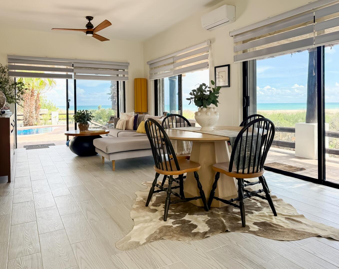 Casa Portofino is a fully-renovated two-bedroom, two-and-a-half bath home on the southern East Cape with unobstructed views of the Sea of Cortez and mere minutes walk to multiple surf breaks. Remodeled in 2023, this two-story home has all new cabinetry, appliances, windows, sliders, front door, wood stair risers, light fixtures, air conditioners, ceiling fans, and a solar system with four lithium batteries and 18kW Generac backup generator. Minutes walk from several surf breaks and just 15-minutes from Nine Palms surf break. VidaSoul Hotel is a one-minute walk away, Le Valise Hotel is 5-minutes away. One hour from the historic town of San Jose del Cabo and 50-minutes from the Los Cabos International Airport.