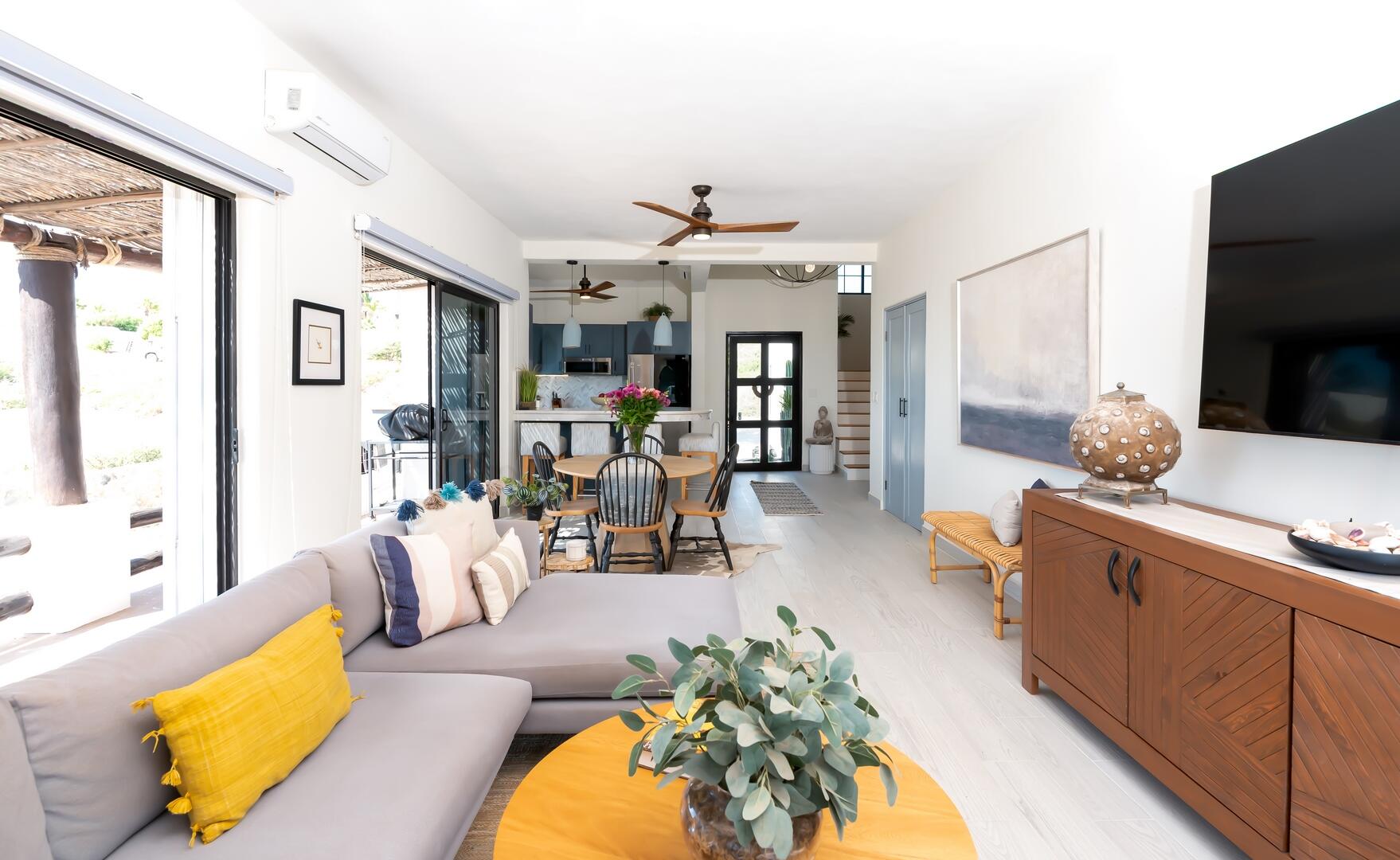 Casa Portofino is a fully-renovated two-bedroom, two-and-a-half bath home on the southern East Cape with unobstructed views of the Sea of Cortez and mere minutes walk to multiple surf breaks. Remodeled in 2023, this two-story home has all new cabinetry, appliances, windows, front door, wood stair risers, light fixtures, air conditioners, ceiling fans, and a solar system with four lithium batteries and 18kW Generac backup generator. The private gym will suit any serious athlete. Minutes walk from several surf breaks and just 15-minutes from Nine Palms surf break. VidaSoul Hotel is a one-minute walk away, Le Valise Hotel is 5-minutes away. One hour from the historic town of San Jose del Cabo and 50-minutes from the Los Cabos International Airport.