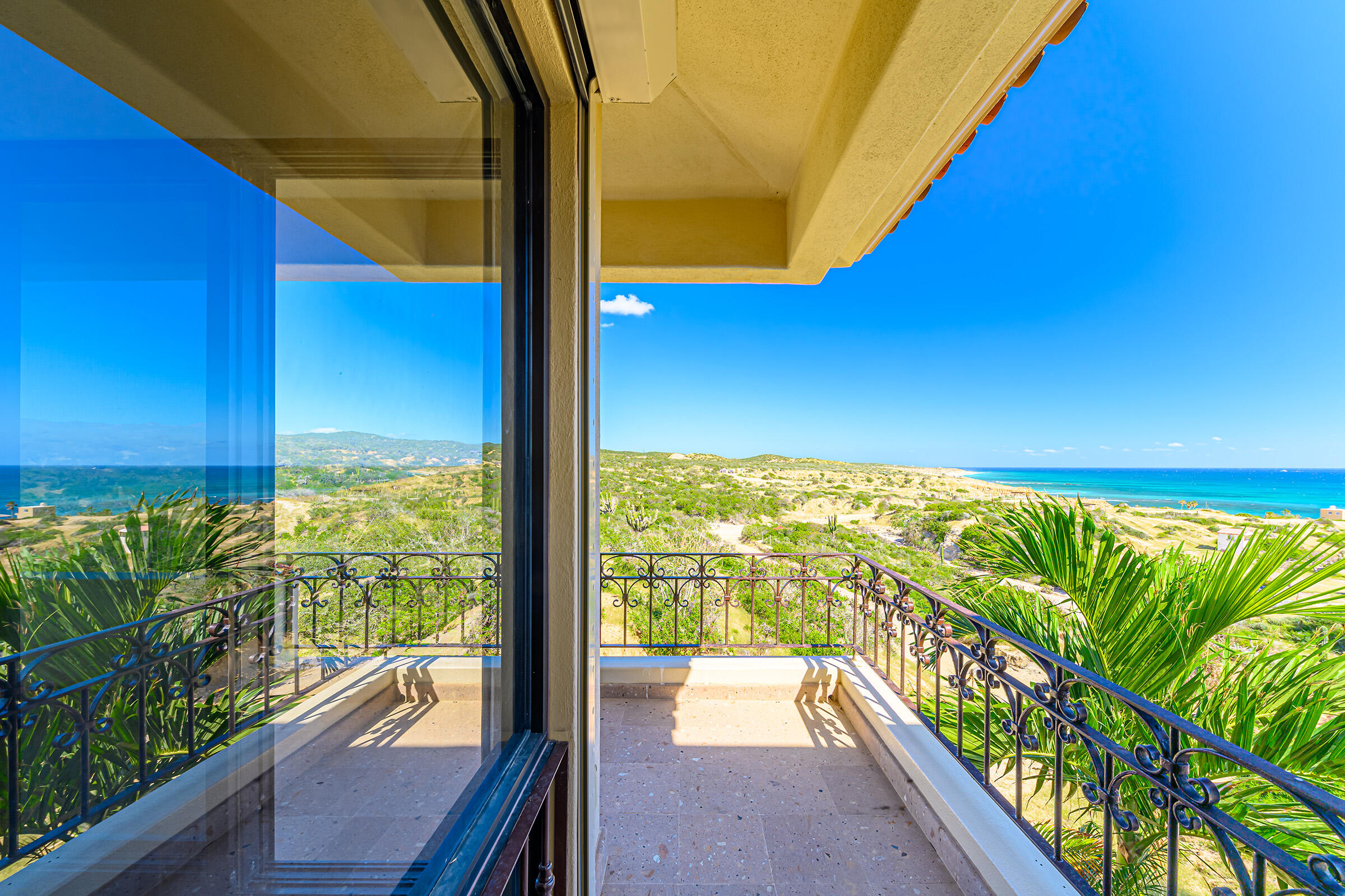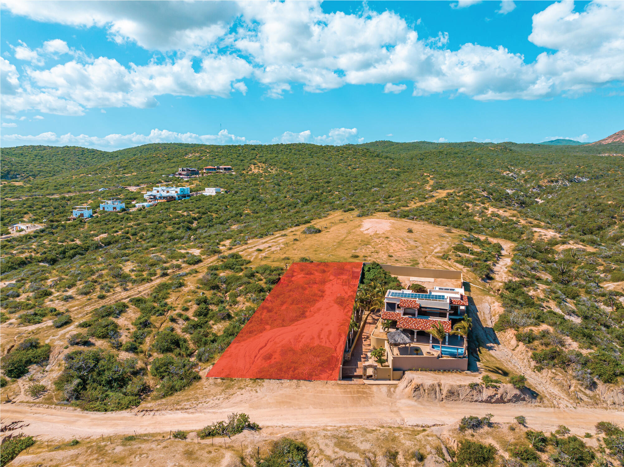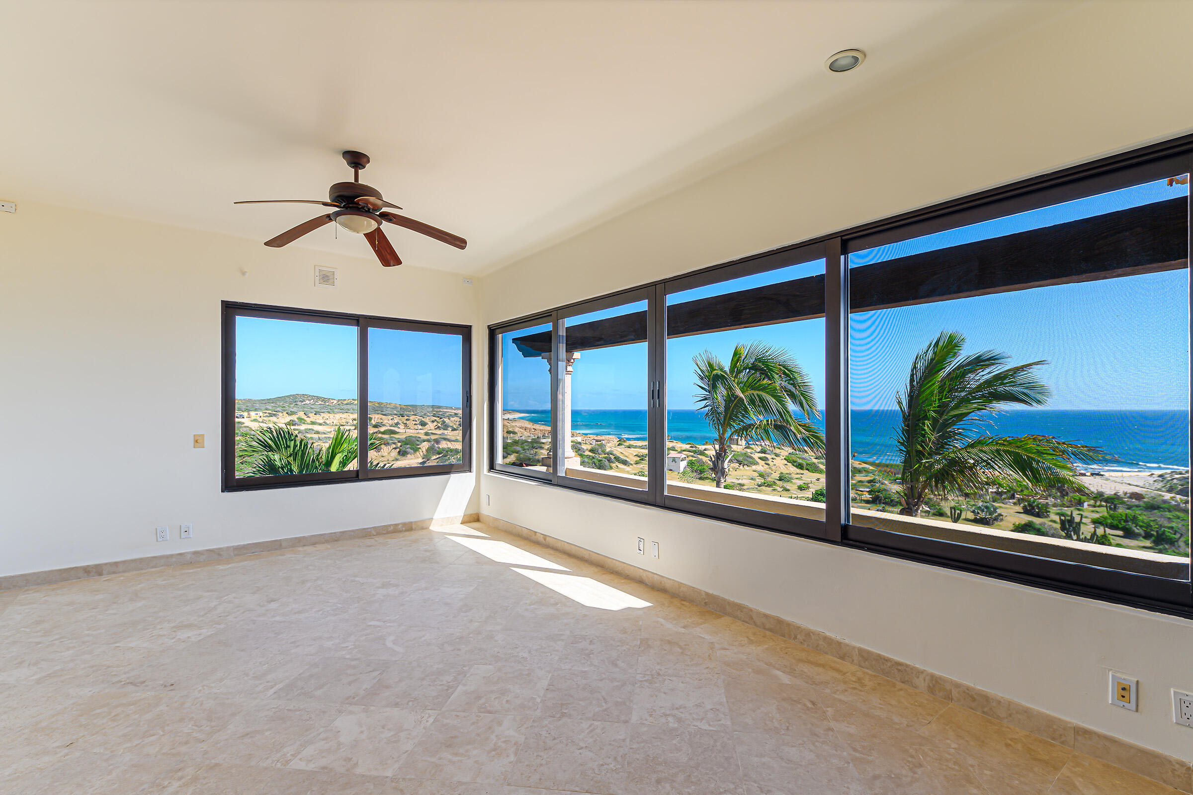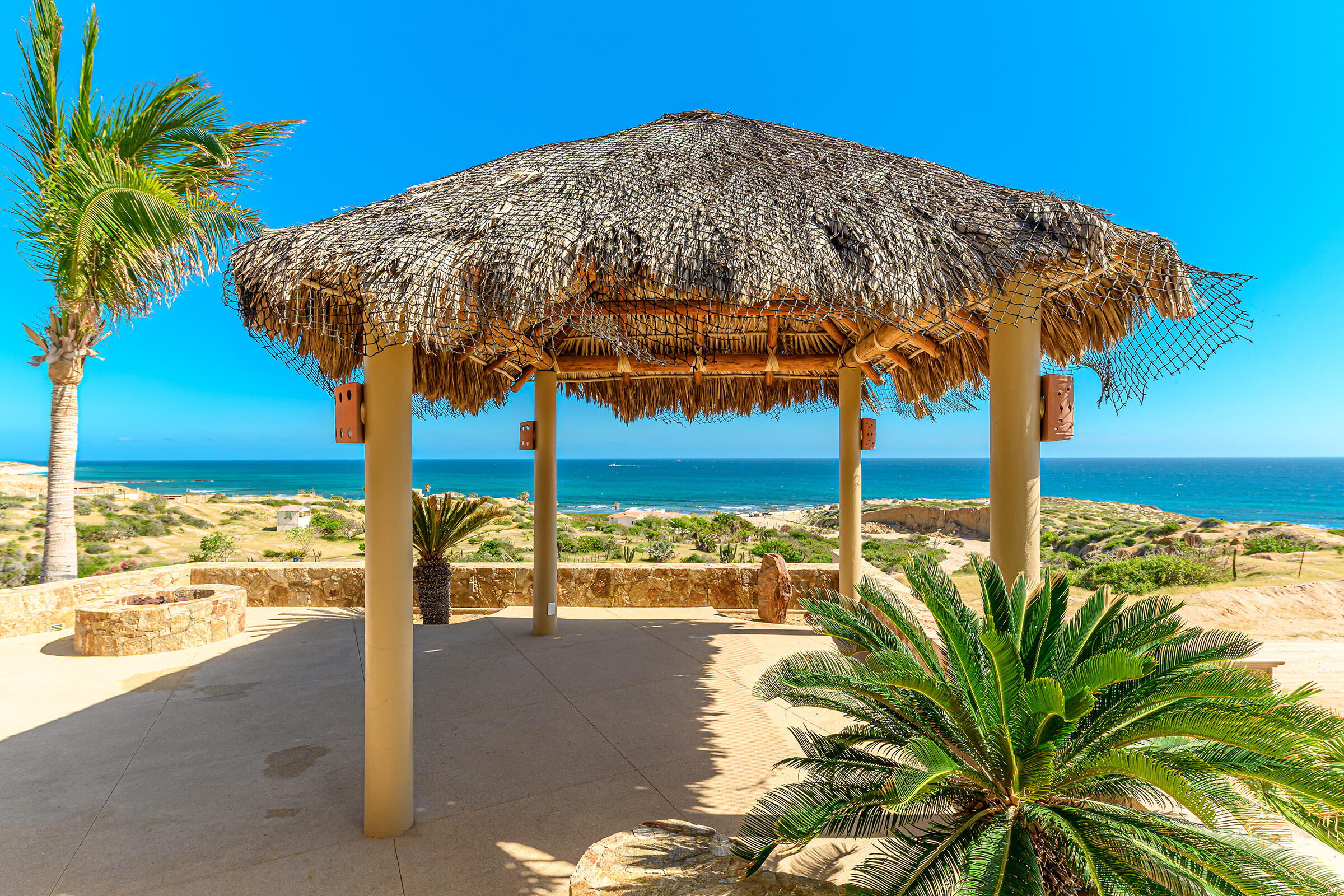 From its position on the hillside Nine Palms Surf Villa offers unparallelled views of Nine Palms Surf Break. This luxury four-bedroom, four and a half bath home sitting at the center of one of the most incredible surf destinations in the world, the southern East Cape, would be a successful vacation rental or a private retreat for surfers, nature and ocean lovers. The house occupies half of the half-acre lot, providing ample space for the construction of an additional home or guest quarters or to subdivide and sell. The approximately 2,600 square-foot home was built to embrace surf views from all four bedrooms and the pool /patio area. It has never been occupied. A four-car garage houses the solar, battery and water systems with loads of room for vehicles and ocean toys. In addition to the surf, you can also watch humpback whales breaching, dolphins playing in the surf, and huge schools of morbula rays popping like popcorn across the sea's surface.
