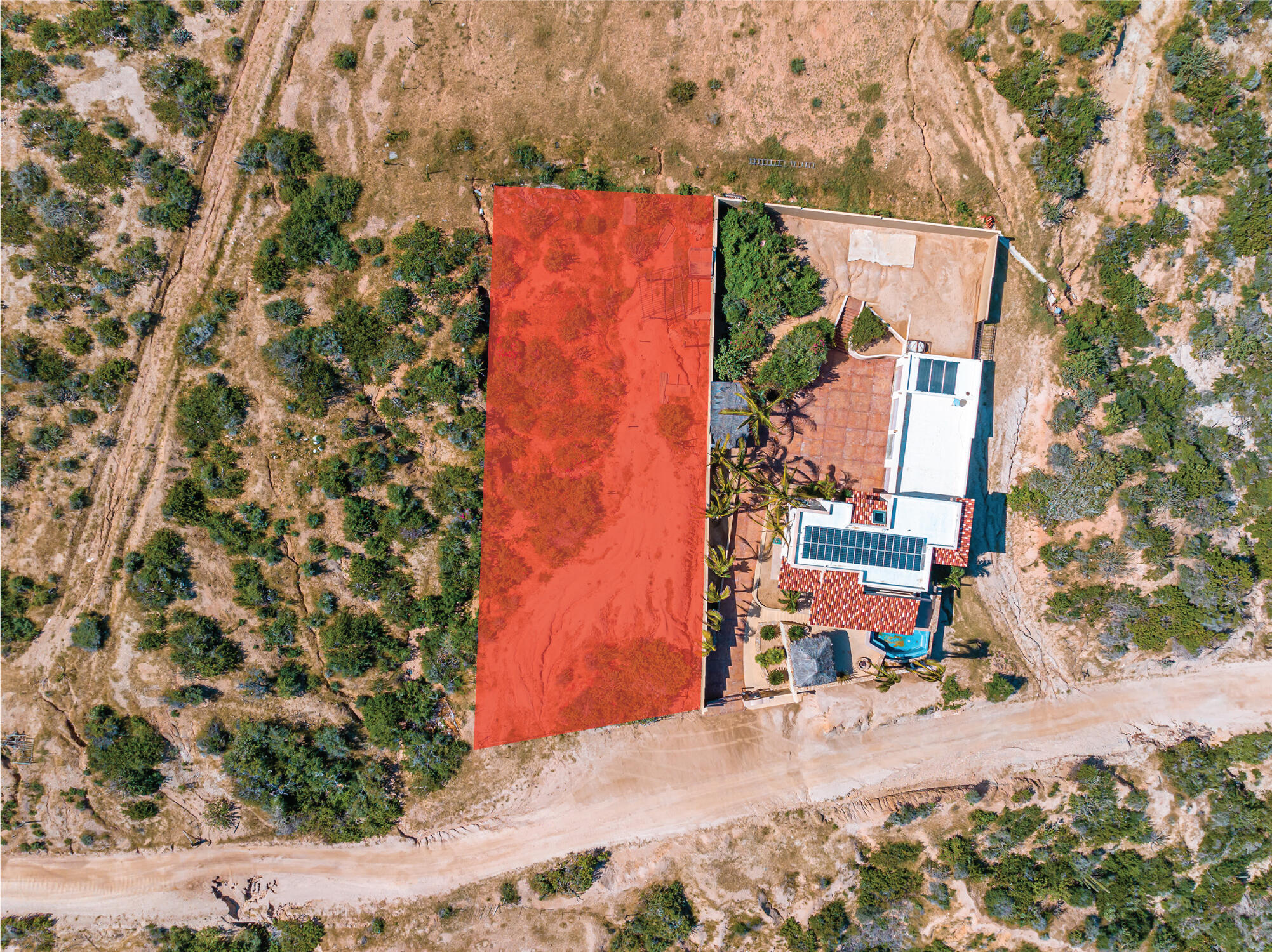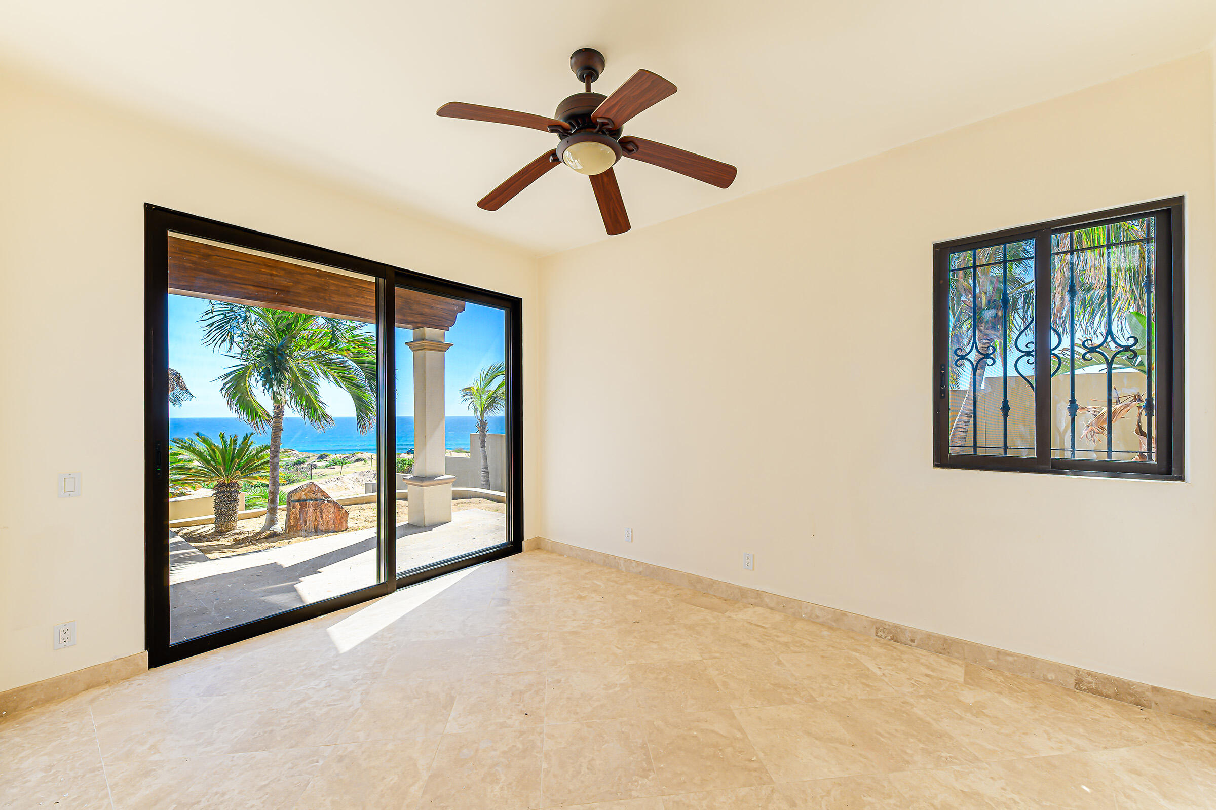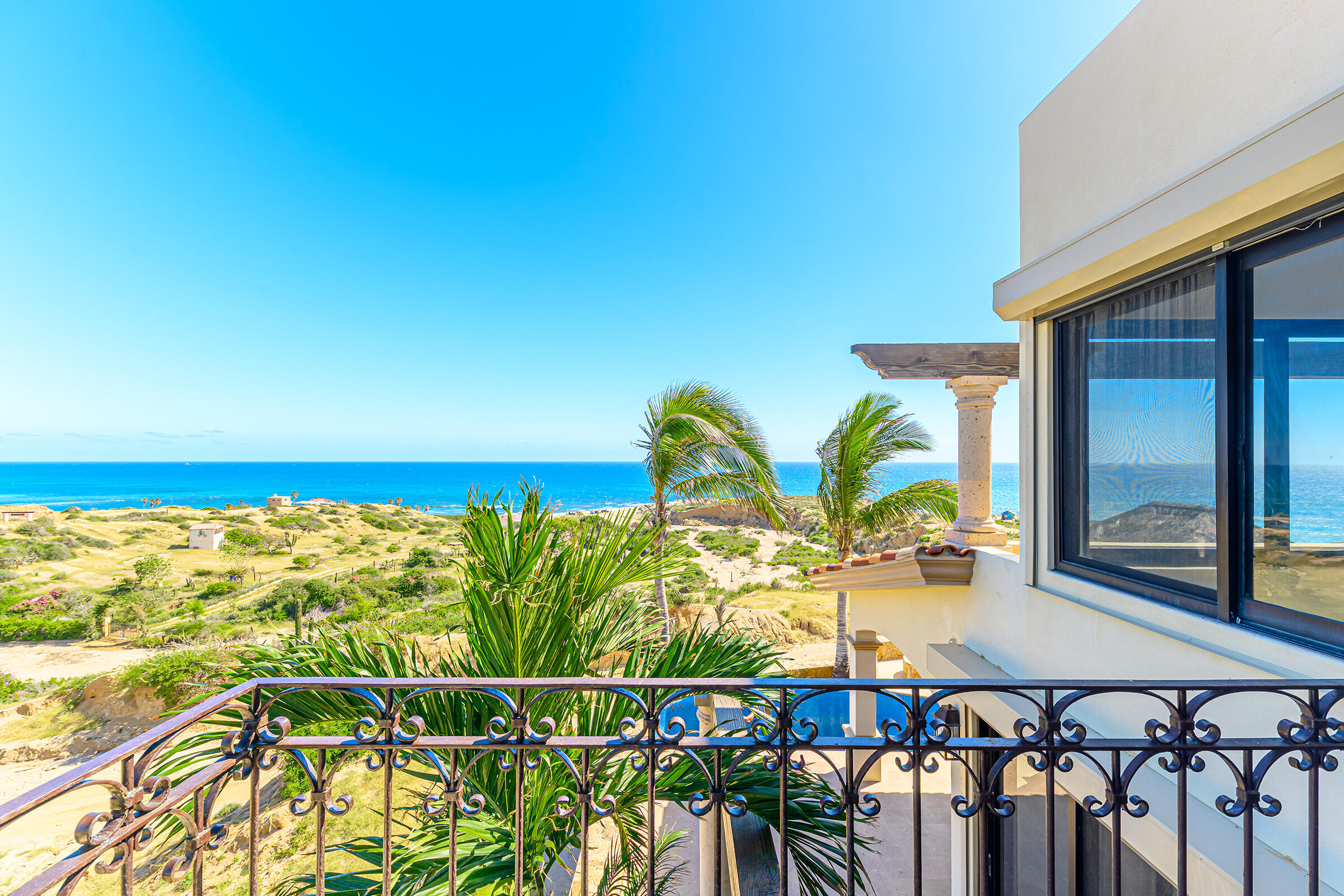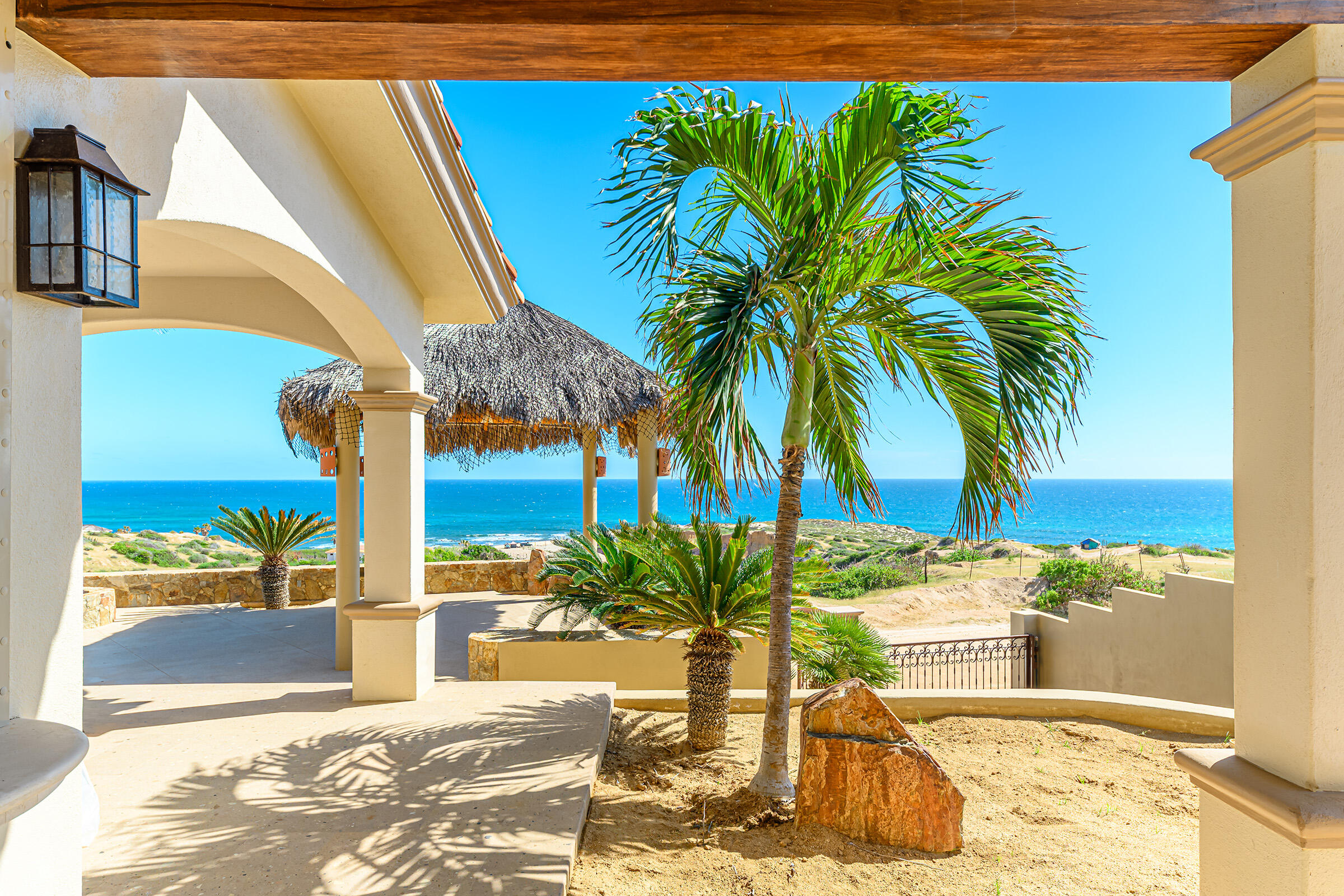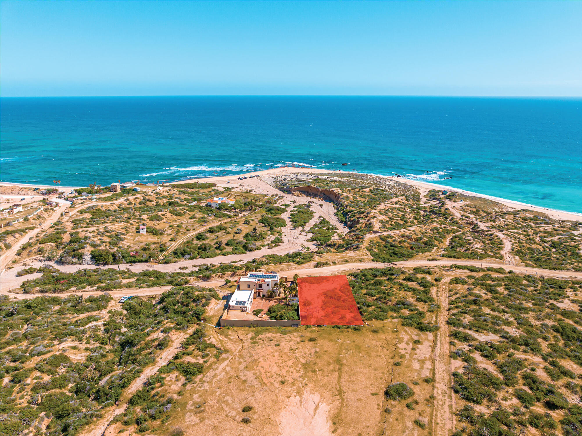 From its position on the hillside Nine Palms Surf Villa offers unparallelled views of Nine Palms Surf Break. This luxury four-bedroom, four and a half bath home sitting at the center of one of the most incredible surf destinations in the world, the southern East Cape, would be a successful vacation rental or a private retreat for surfers, nature and ocean lovers. The house occupies half of the half-acre lot, providing ample space for the construction of an additional home or guest quarters or to subdivide and sell. The approximately 2,600 square-foot home was built to embrace surf views from all four bedrooms and the pool /patio area. It has never been occupied. A four-car garage houses the solar, battery and water systems with loads of room for vehicles and ocean toys. In addition to the surf, you can also watch humpback whales breaching, dolphins playing in the surf, and huge schools of morbula rays popping like popcorn across the sea's surface.