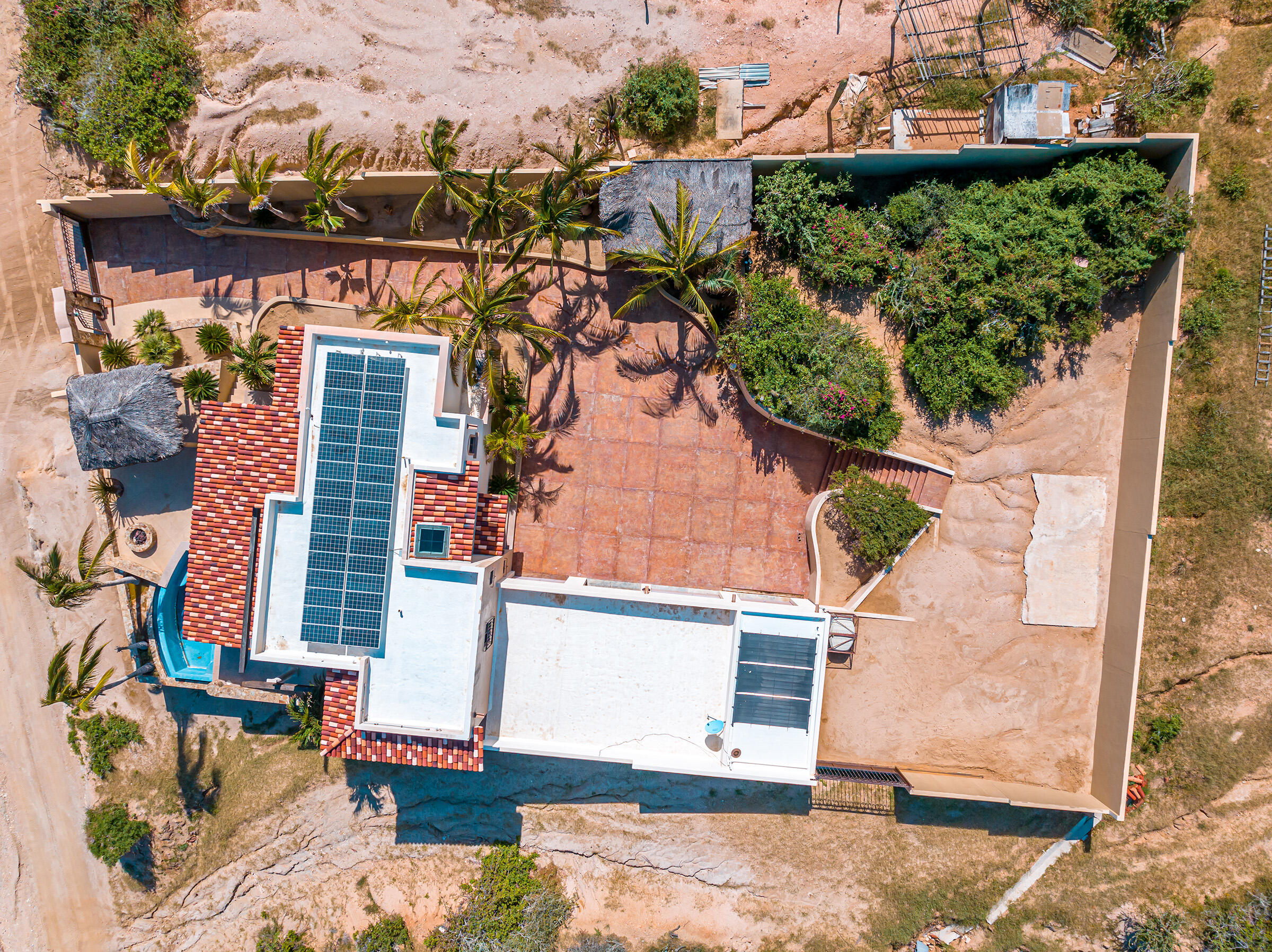 The property is gated, walled and equipped with automatic hurricane protection shutters. Nine Palms and its white sand beach and world class surf break is a short walk or quick ATV ride away.