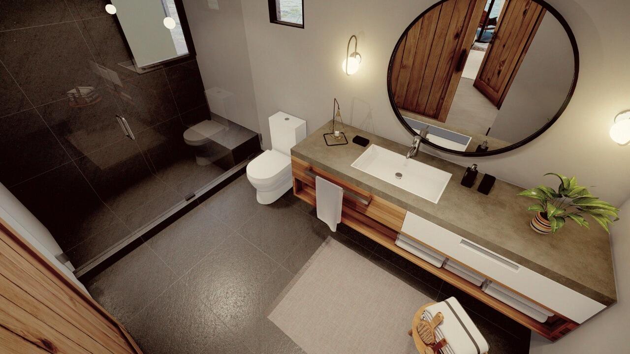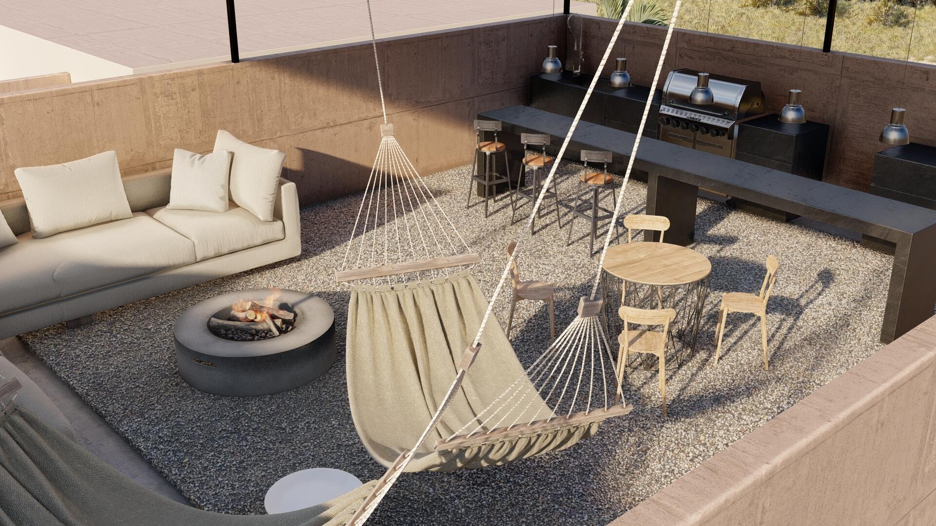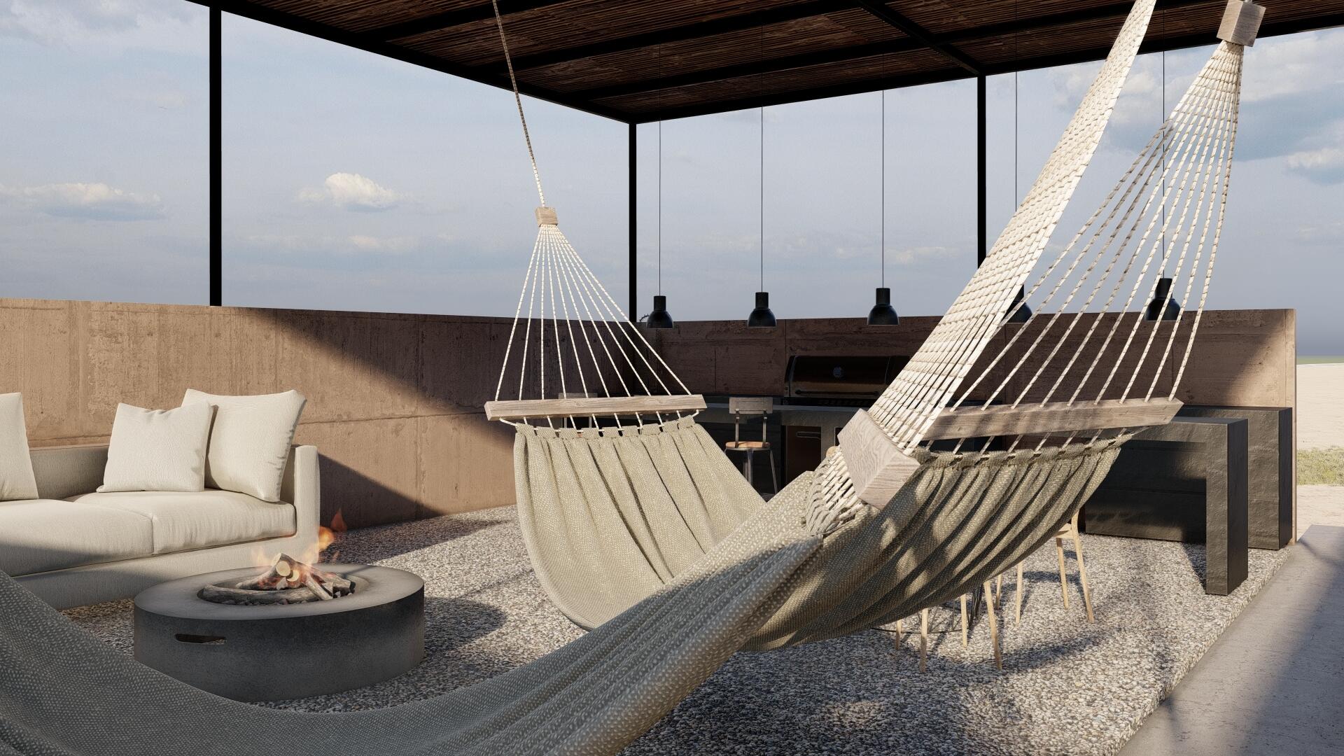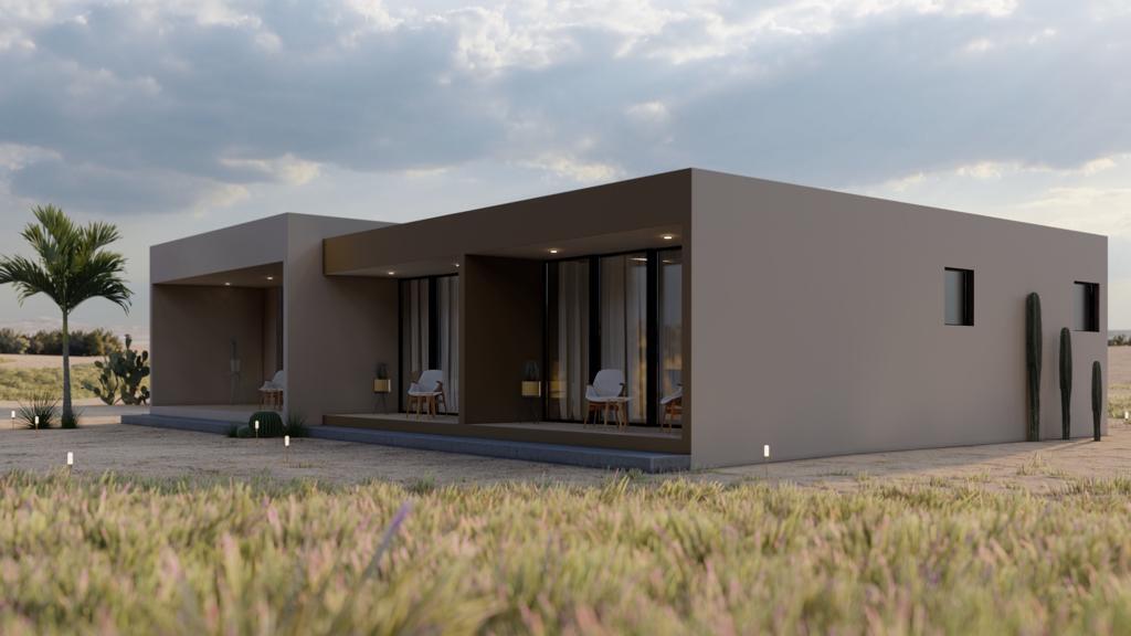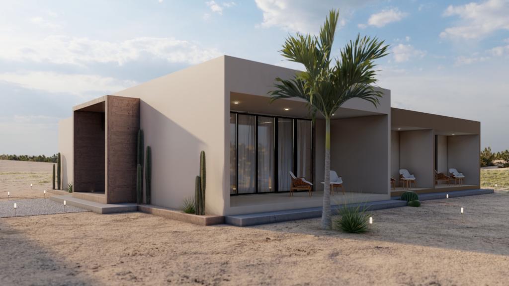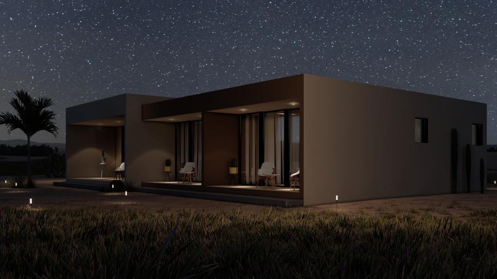 Quintas Terranova Manzana 6-12 is a self-sustainable home on approximately one-third acre home-site on the East Cape of Los Cabos. This quaint ocean view home is designed with the Baja adventurer in mind. The 1,541 square foot main home offers an open great room with kitchen and island, dining and living area, which leads to a patio terrace overlooking the desert garden. Lot 6 - Manzana 12 is a 17,756 square foot (1,649.69 square meter) home-site located in the south-west area of Bahia Terranova II. The principal bedroom offers a desk, private patio, and en-suite bath. The guest bedroom has a desk and closet with a private patio. The 680 square foot garage has space for two SUV's or side-by-side dune buggies, with room for toy storage and an outdoor shower. See Supplement This home is under construction - due for completion fall 2025. The garage has an outdoor shower and will be rough plumbed for a two-piece bathroom. The second level outdoor living space captures vast desert and mountain vistas with blue water ocean views to the southeast and southwest. This upper living space allows outdoor living with space for a grill station and outdoor kitchen area with island, and fire-pit and is covered with a shade pergola where the solar panels are mounted. The house is self-sufficient with solar and battery power, a back-up generator and water storage.