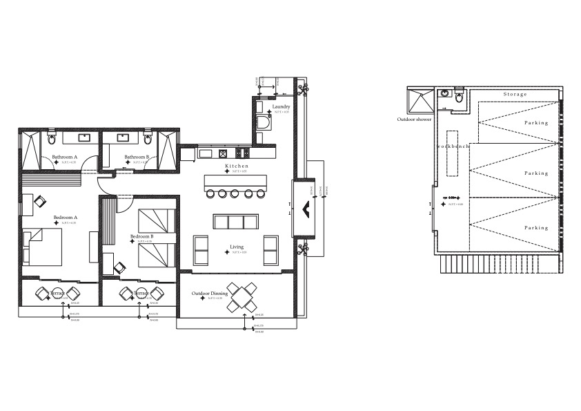 The garage is 680 square feet and offers an interior height of 3 meters or 9 feet 8 inches and a garage door height of 2.7 meters or 8 feet 5 inches - plenty of room for vehicles and toys or, to do a surfboard ding repair or change the oil in the ATV.
