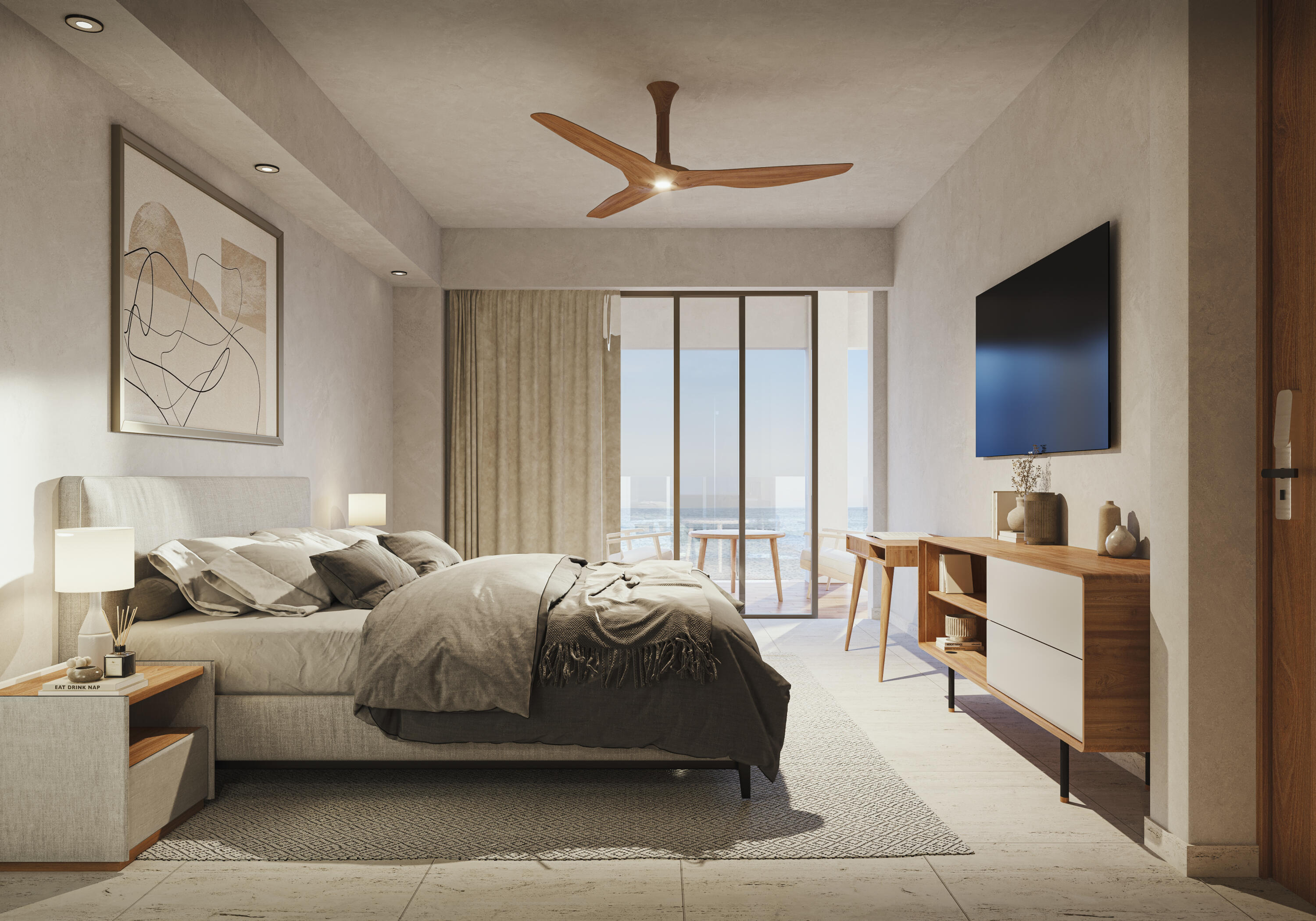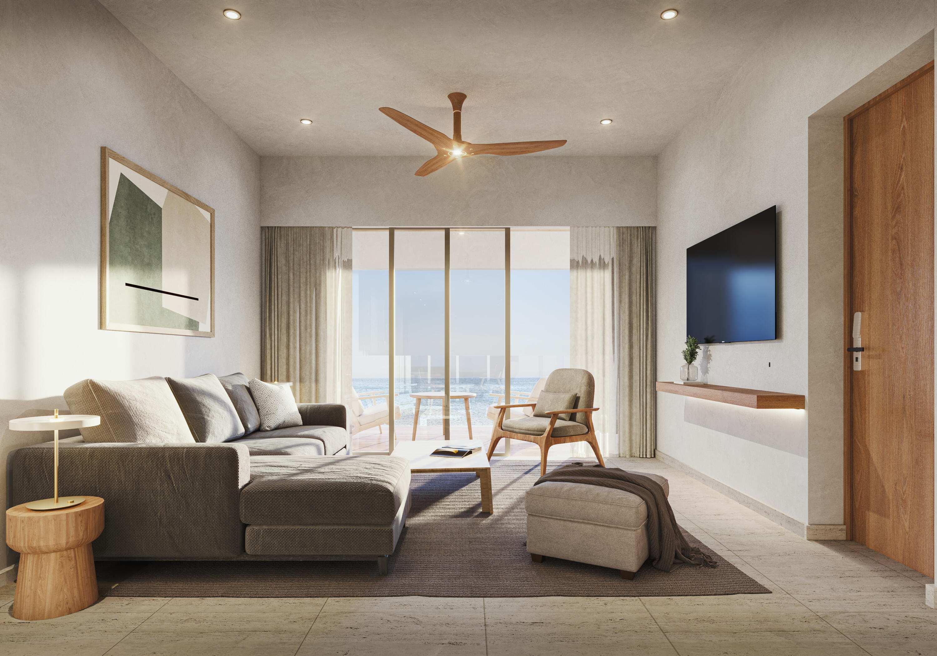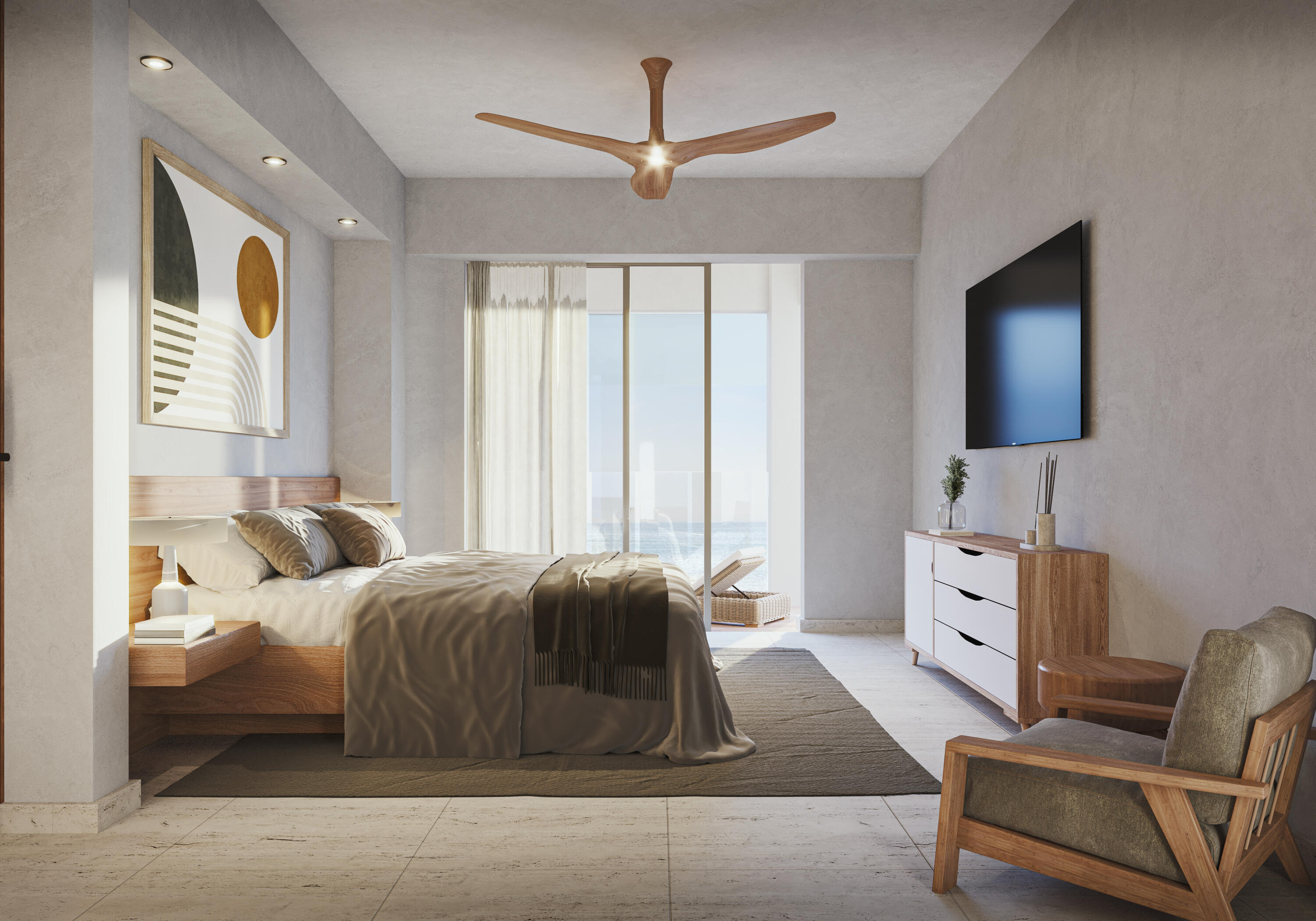 Drawing its name from the majesty of the natural environment, Tortuga Bay offers luxury beachfront living in the Bay of San Jose. A sophisticated sanctuary of sun, sea, and sand within 3km of the vibrant lifestyle and gracious colonial charm of downtown San Jose del Cabo. It is 12km from the international airport, within walking distance to the historic downtown, and steps away from dozens of restaurants and shops offering an exceptional lifestyle. Enjoy direct beach access for morning strolls or water activities. Resort-style amenities, including pools, fitness center, dog park, pickle ball courts, gated community with 24/7 security, fire-pits, and grill areas. Please see supplements... This thoughtfully designed three-bedroom residence offers a perfect blend of natural elements and stylish sophistication over 2,456.01 square feet of indoor-outdoor living space. Interiors flow seamlessly onto terraces, offering panoramic ocean and bay views. Quality is in every detail, from the tasteful cream-colored marble floors to the solid alder wood custom carpentry. Entering the residence is an open-plan kitchen boasting granite countertops and a breakfast bar with seating for three. A service room to the left is followed by a bathroom with double vanities. To the right is a flexible room that can be used as a third bedroom or home office. A dining room suitable for eight is followed by a living room that opens onto a large terrace through floor-to-ceiling sliding glass doors. Enjoy breathtaking views from both of the two principal bedrooms, which open onto the terrace. One of the principal bedrooms enjoys a large semi-private terrace and walk-in closet, while the other enjoys a large private ensuite bathroom with double vanities and a walk-in closet. Each residence comes with a secure underground parking space serviced by an elevator.